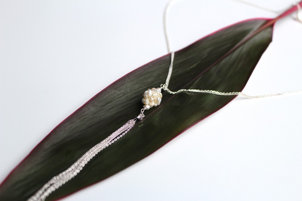 葡萄モチーフの淡水パールロングネックレス。