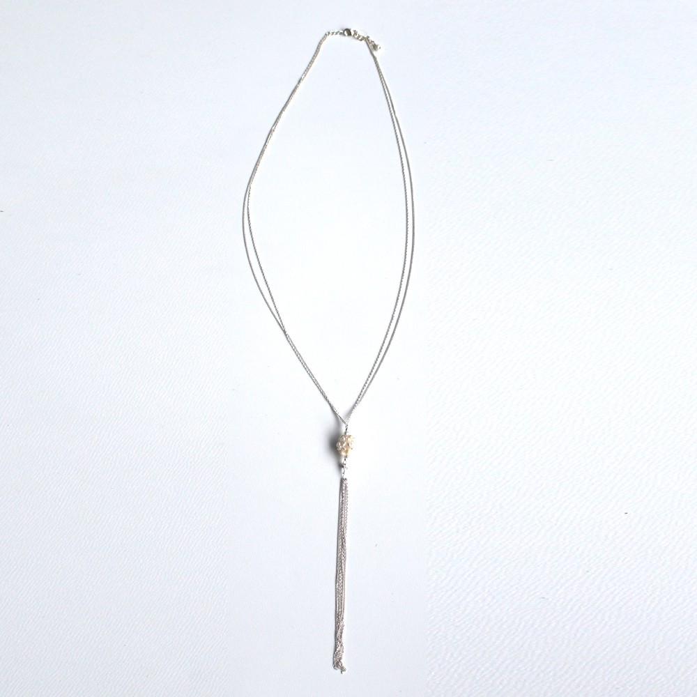 パール部分サイズ:約1.3cm / ネックレス長さ:約60cm / パール下フリンジ長さ:約13cm