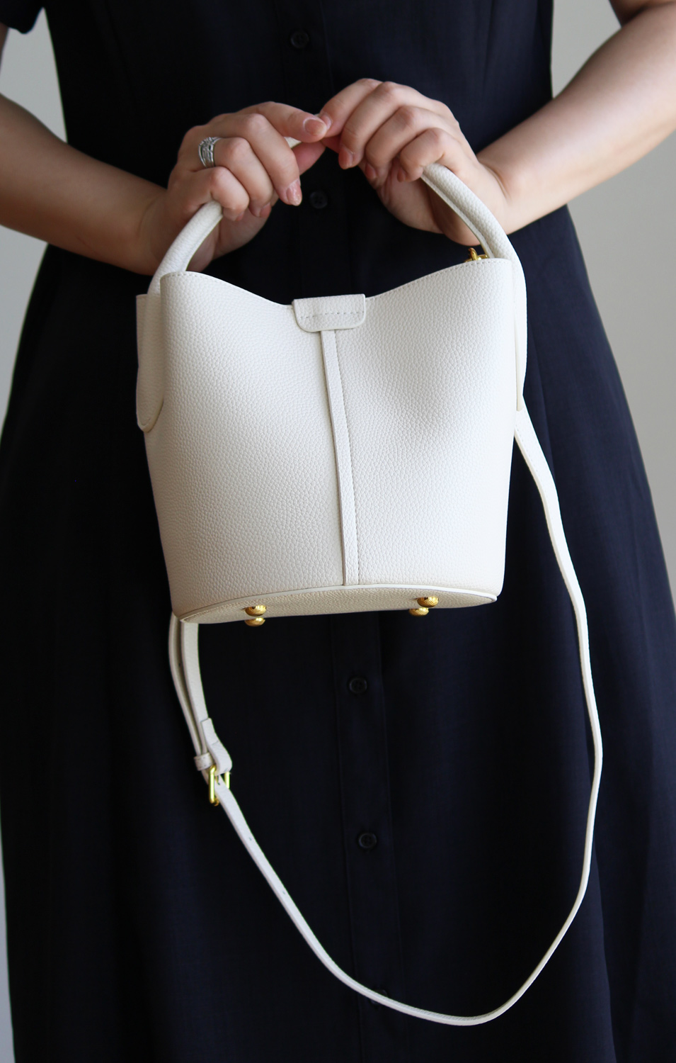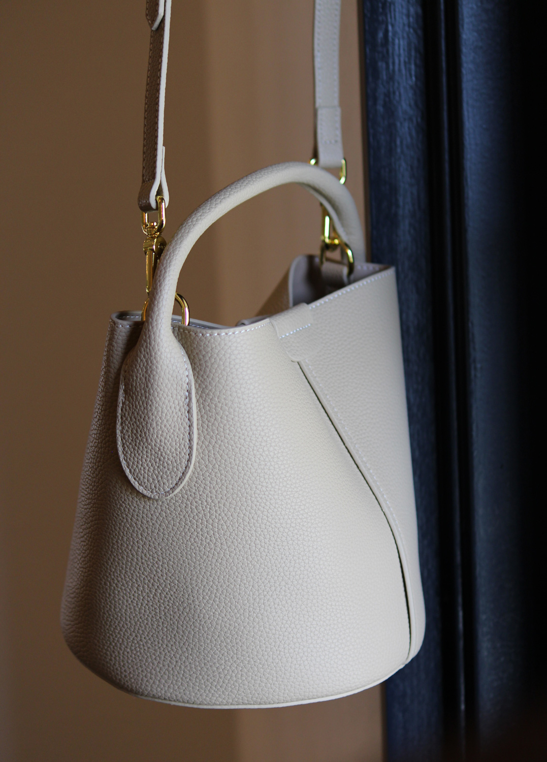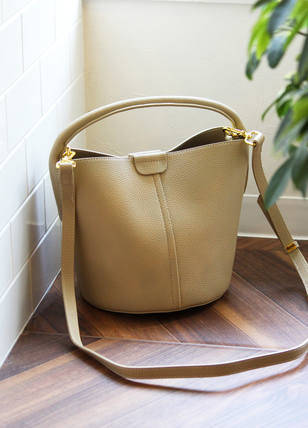 革目の美しい撥水加工牛革のバケットバッグ