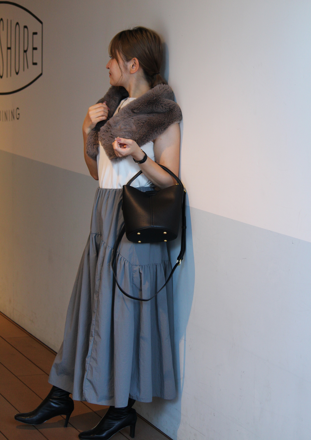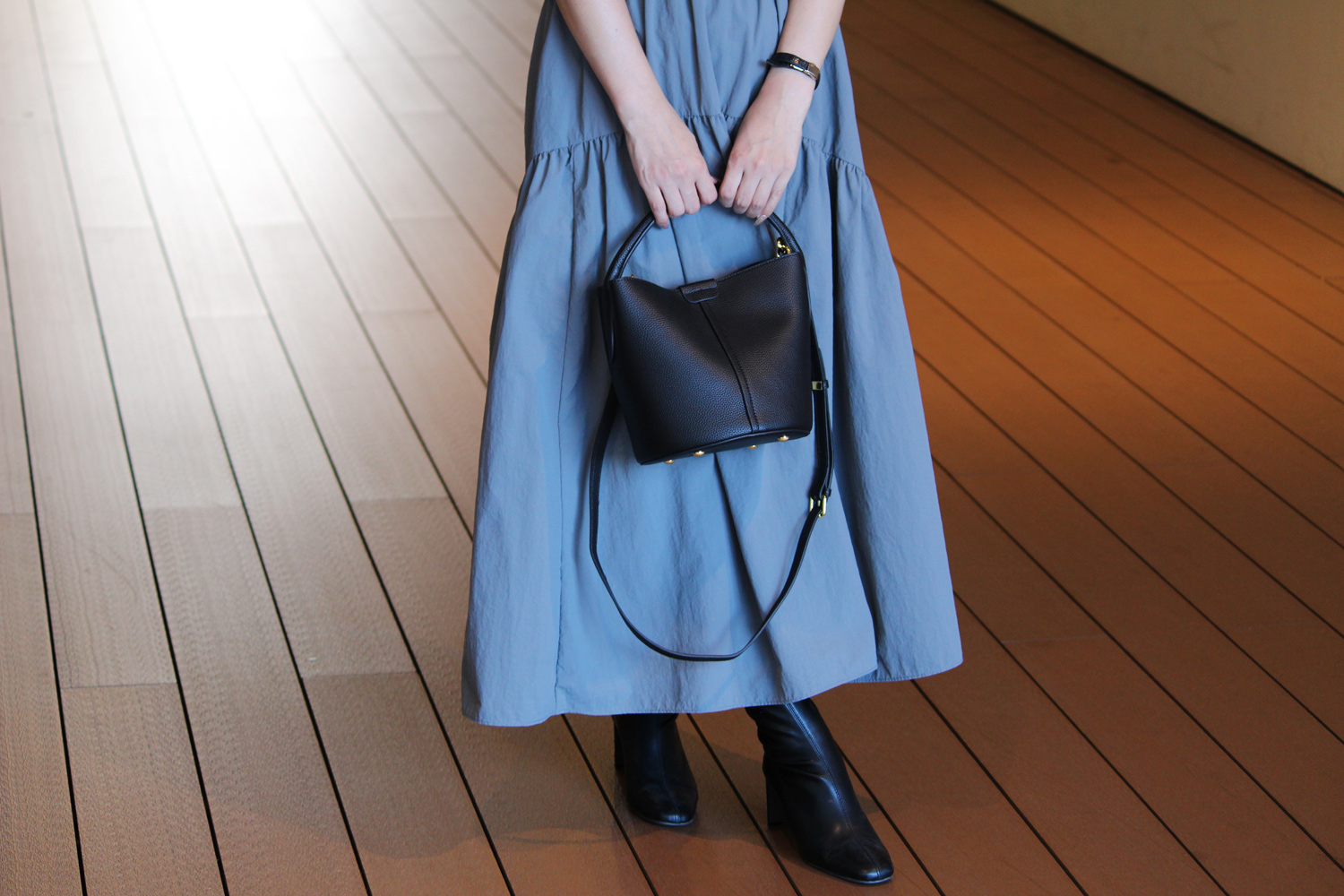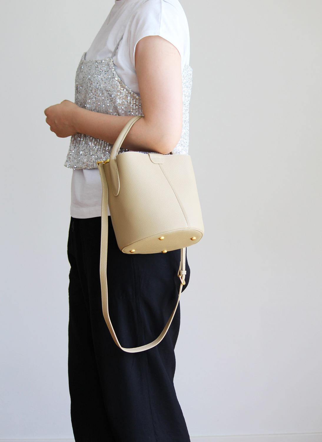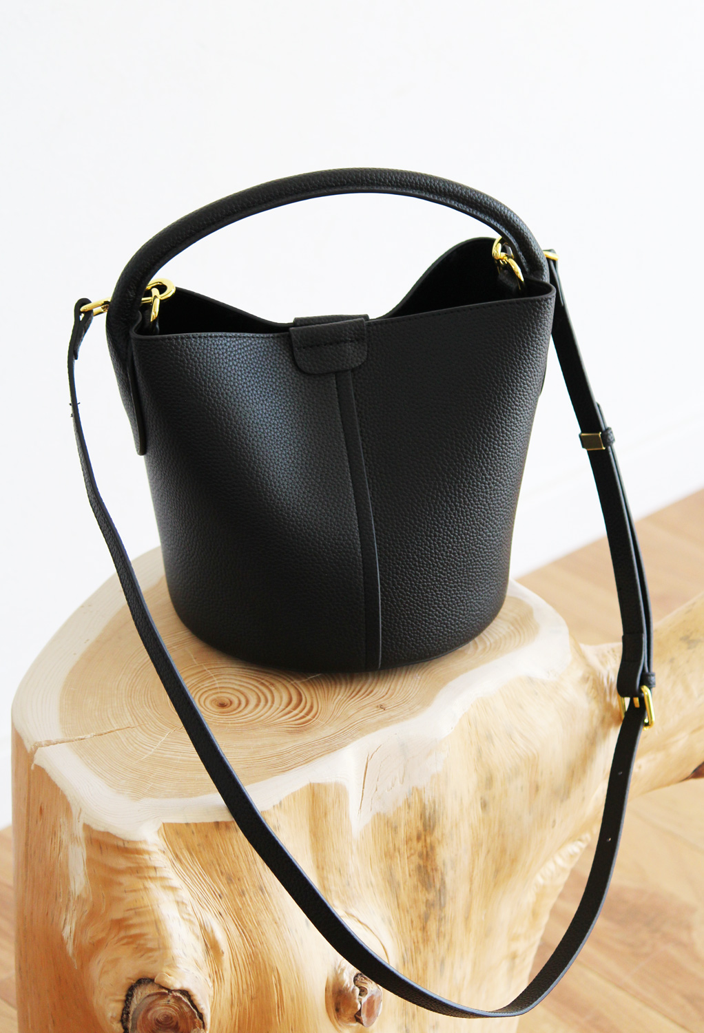 革目の美しい撥水加工牛革のバケットバッグ