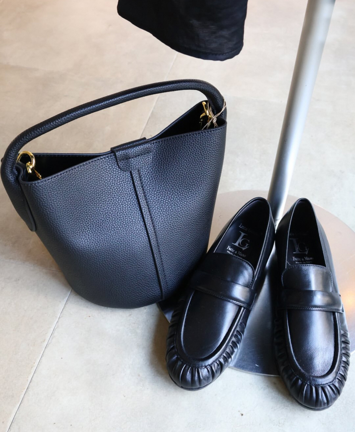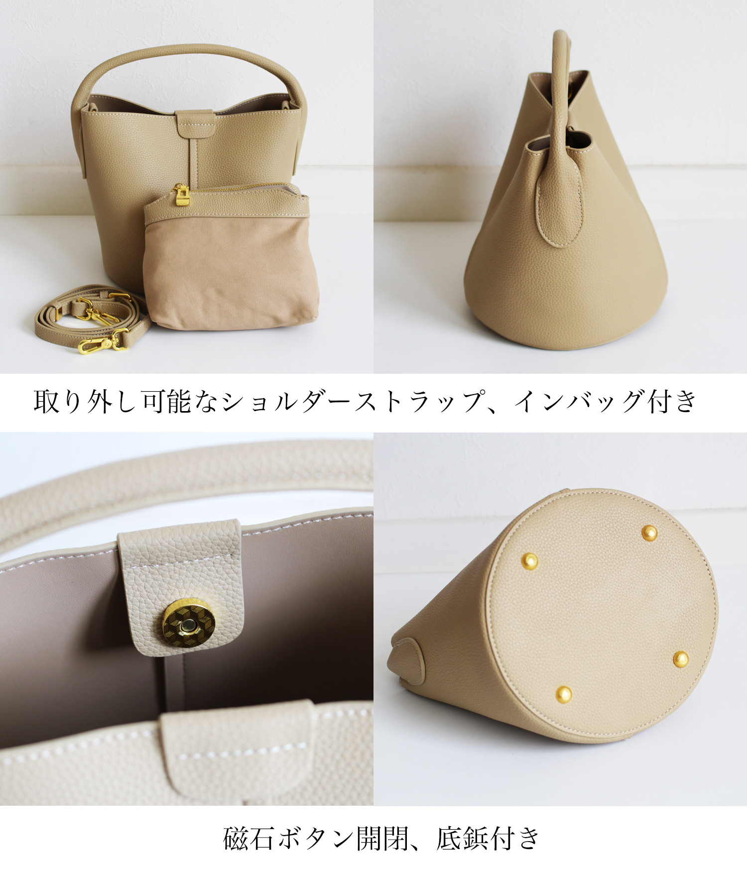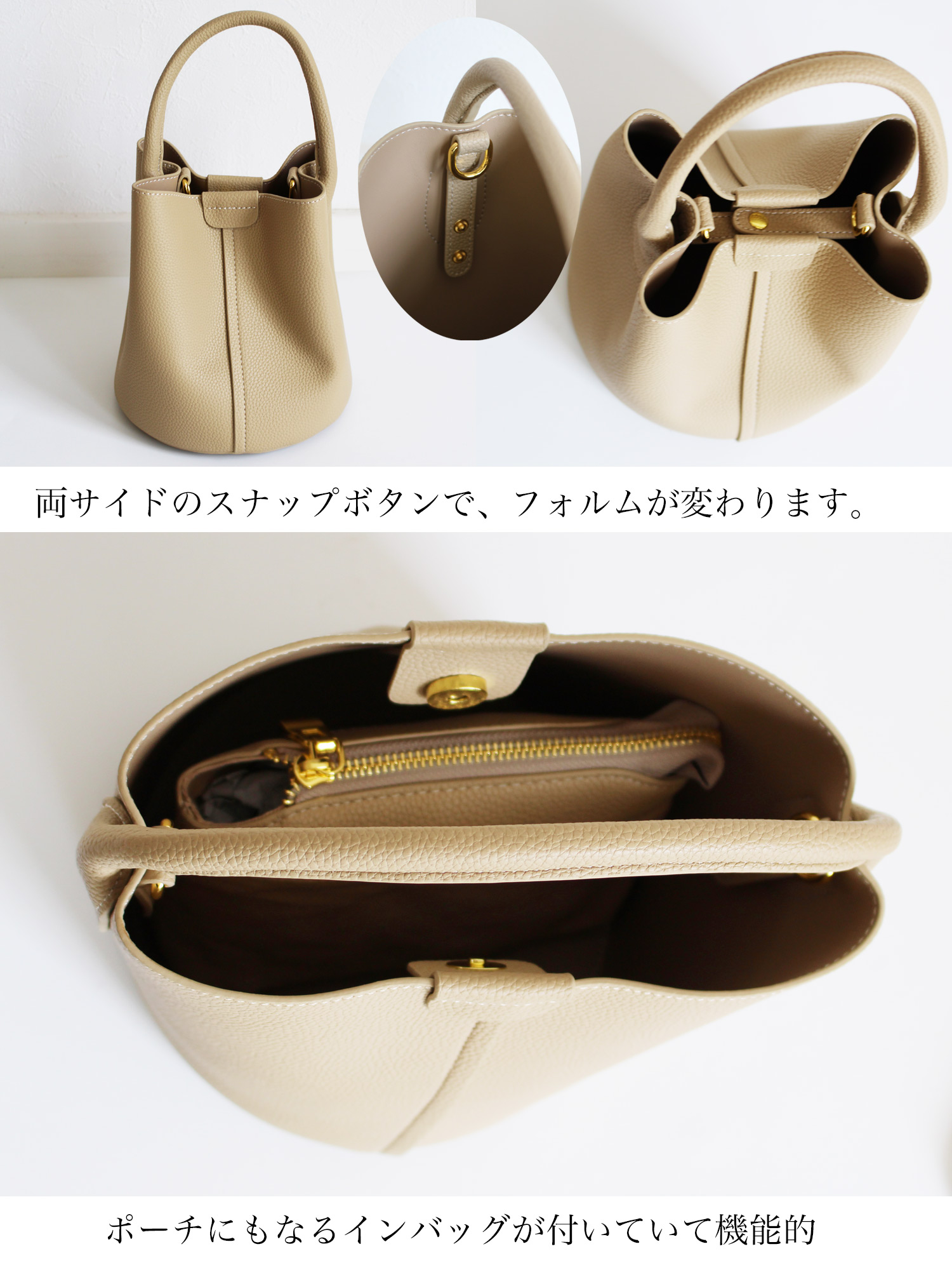 品名:革目の美しい牛革のバケットバッグ 品番:ik-a-josh01