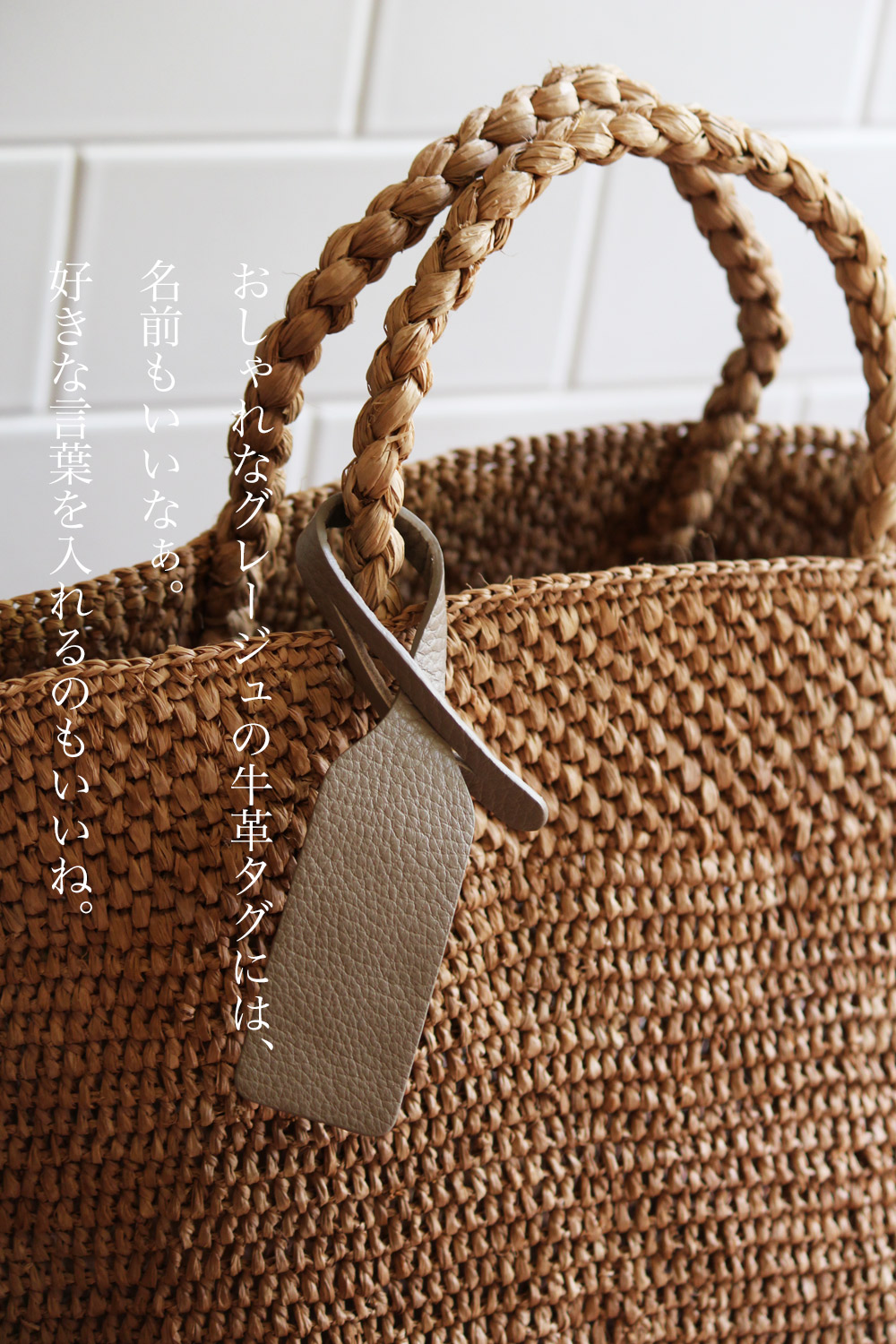 [送料無料] 名前・イニシャル刻印つき ケニアリネンとレザーのかごバッグ